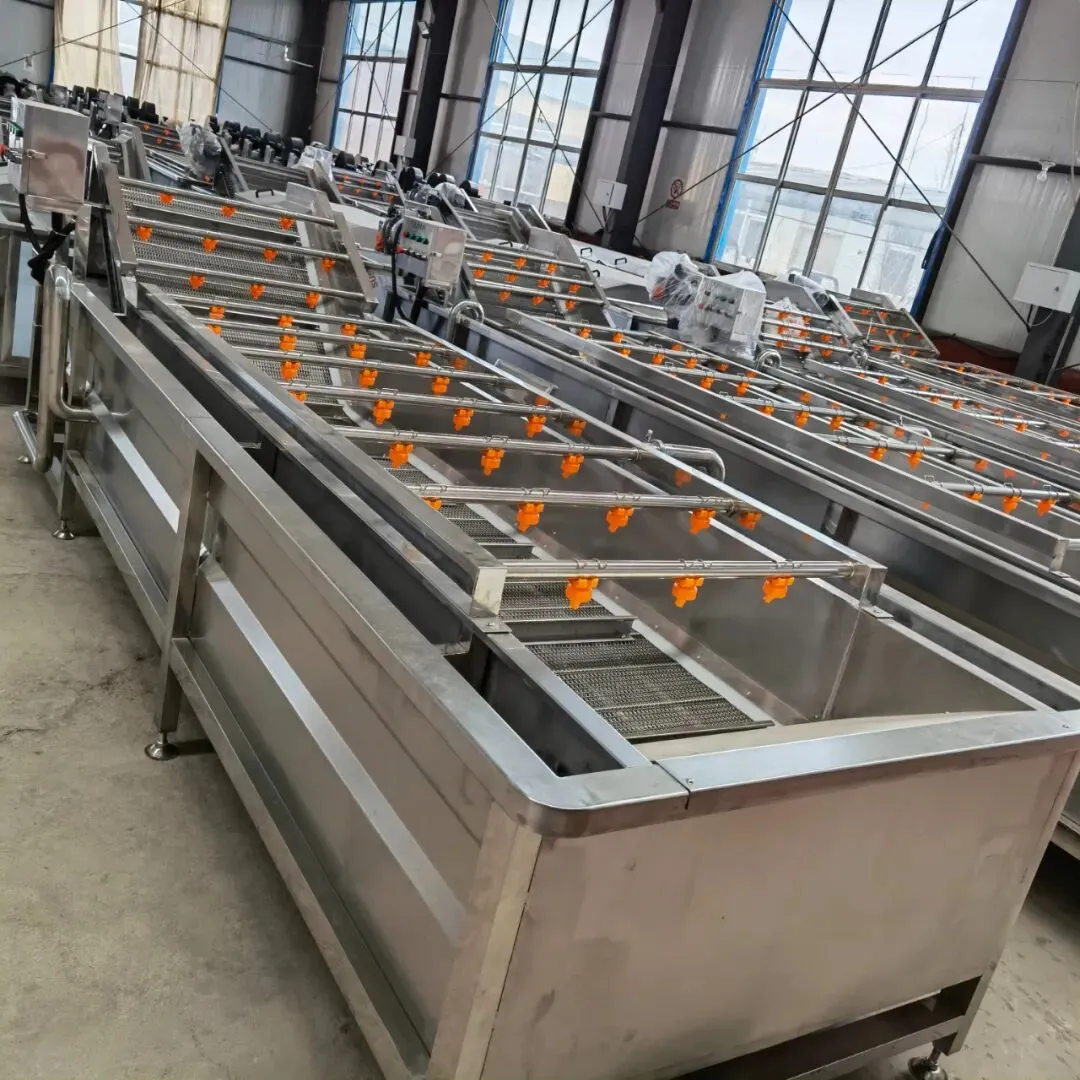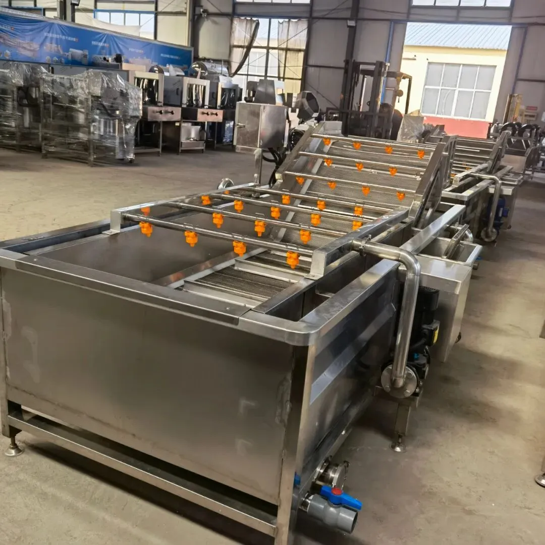 气泡清洗机主要用于绿叶蔬菜的清洗,可分阶段清洗,分别去除泥沙,杂物、漂洗等,去杂洗净度高,能保持原有色泽。采用不锈钢材料安全可靠,结构简单,便于维护,能耗较小,以水为介质,通过强流涡轮风机形成气泡翻浪,对果蔬进行柔性清洗。
