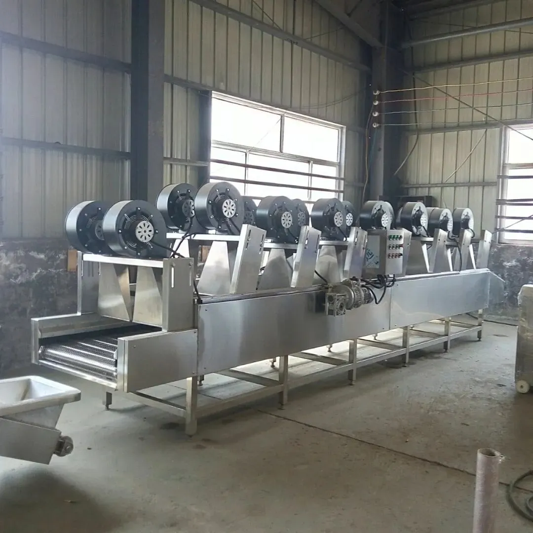 烘干蘑菇流水线流程:清洗->切->漂烫-> 冷却振动筛 ->风干-> 烘干 ->包装