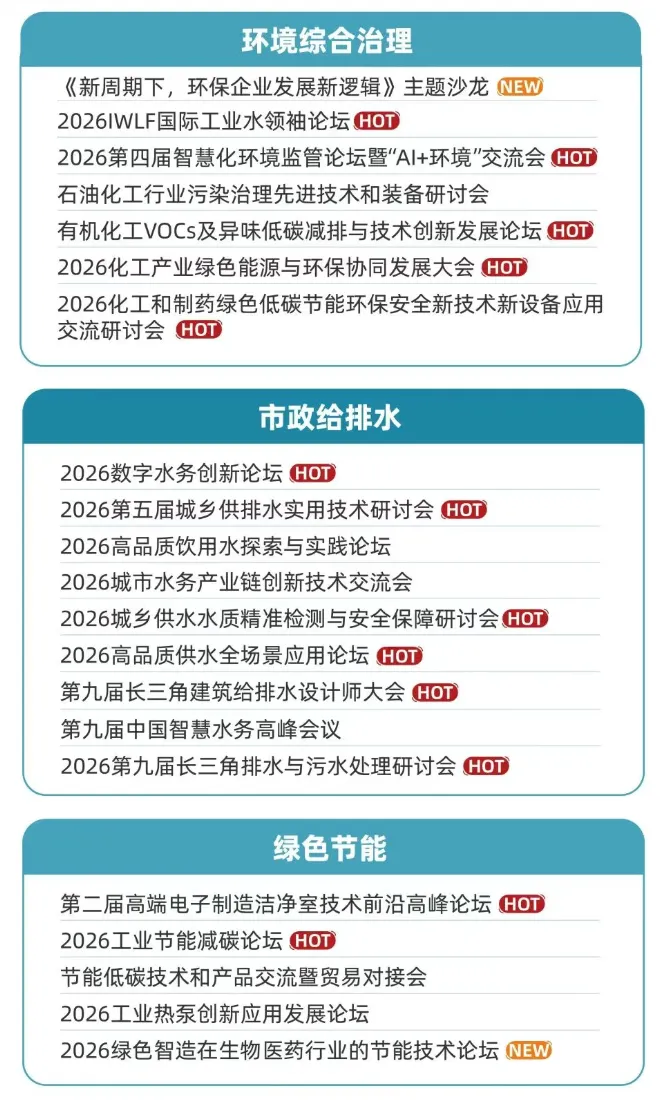 2026世环会【工业节能与环保展】6月9-11日在上海国家会展中心举办!世环会展现环境综合治理中的水、大气、固废、土壤等污染防治和环境监测,同时也展现工业领域的通用设备节能改造余热余压回收、节能节水等在绿色制造转型过程中的关键技术。