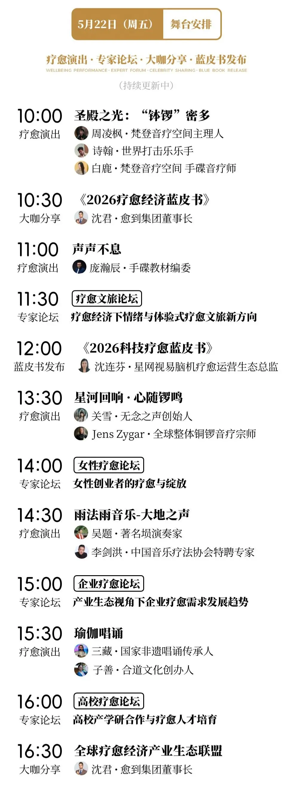 国内外疗愈行业顶尖大咖、高校教授及学科带头人将重磅集结,深度分享疗愈领域最新成果。
