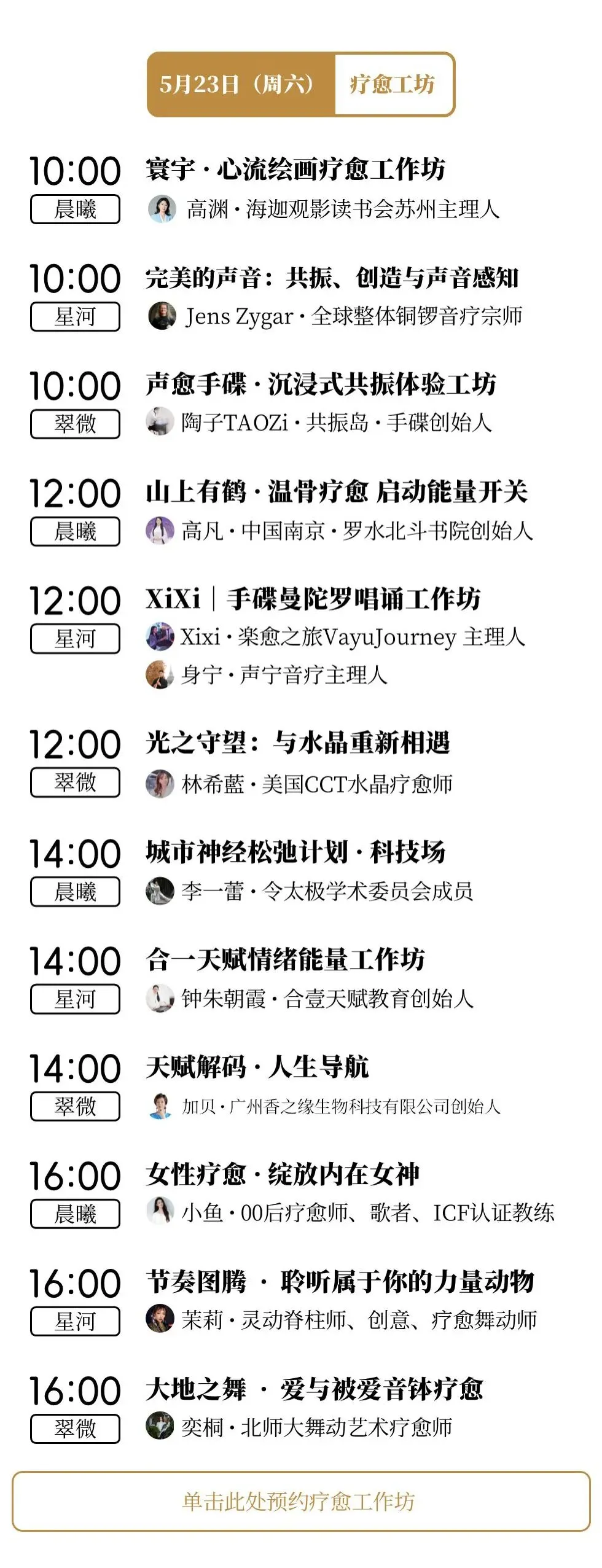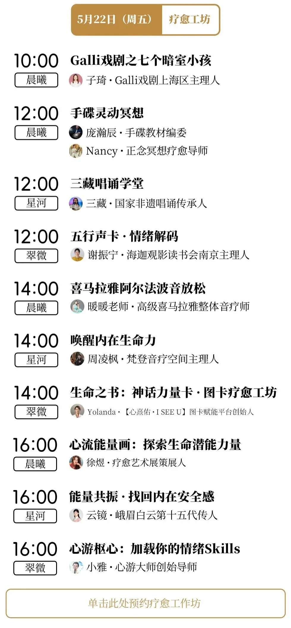 三天内将开启超30场多元疗愈工作坊,助你一站式深度体验全行业疗愈品类。