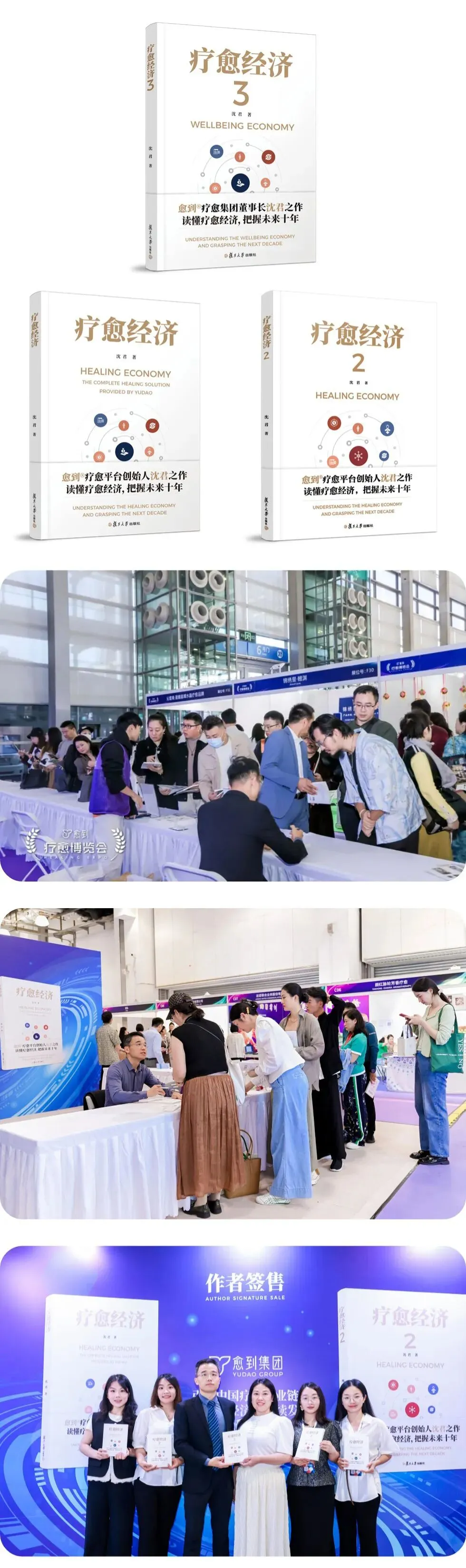 现场将举办愈到集团携手复旦大学出版的重磅著作《疗愈经济3》《疗愈经济2》《疗愈经济》签售活动,由愈到集团董事长沈君现场亲笔签名。