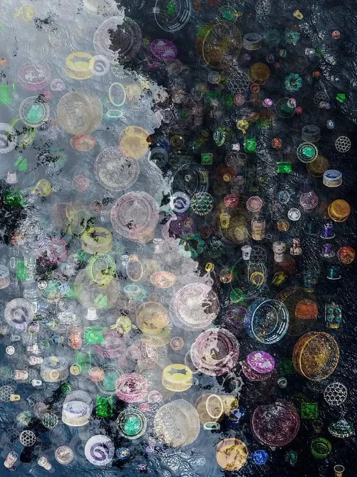 陈漫《弃物》把视线投向被遗忘的海岸垃圾,以 “拾取” 与 “拍摄” 完成双重实践。她将废弃物置于精致光影中,赋予其近似珠宝的视觉美感,在审美诱惑与污染现实间形成强烈张力。这不仅是对被忽视之物的重新看见,更是以影像介入环境议题,让海岸成为人类消费与遗弃行为的显影场。