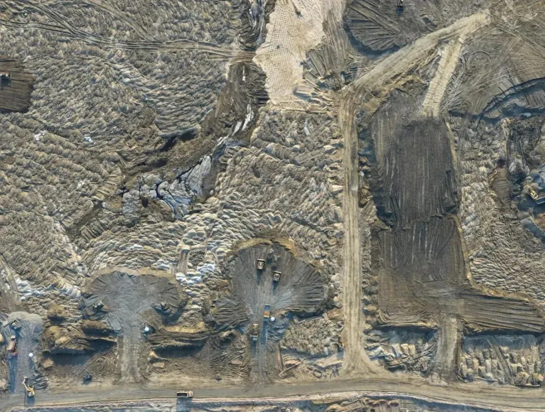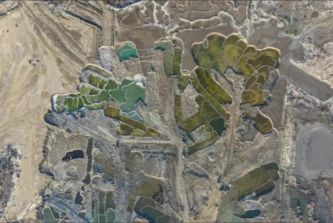 马思民《重构》以冷静航拍镜头,记录沿海工程与矿山开采改造下的 “后自然景观”。他摒弃戏剧化表达,客观呈现自然被切割、挖掘、重塑的过程,消解自然与人工的界限。作品如同无声档案,不做评判却引人深思:在发展与改造的同时,人类该如何面对自然的代价?