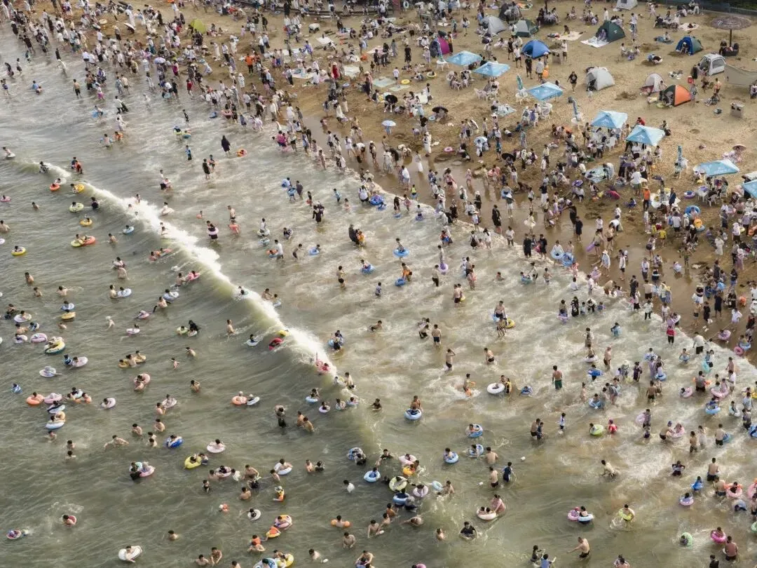 濮海平《乐园》将观看从风景转向人本身。高位视角下,海边人群被压缩为密集小点,身体相近却心灵疏离,共处一岸却各怀心事。海岸不再是自然乌托邦,而是承载孤独与相聚、热闹与孤寂的当代聚集场域。她以细腻克制的视角,让 “乐园” 照见每一个真实的个体。