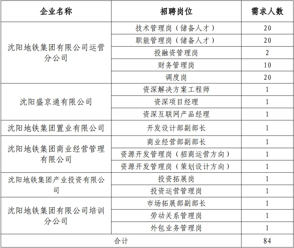 沈阳地铁集团有限公司是沈阳市市属大型国有全资公司,深耕“轨道建设、轨道运营、资源开发、产业投资”四大业务板块, 坚持以改革促发展,以成果惠民生,推动企业发展与服务民生同频共振。为满足地铁集团战略发展及业务需要,现通过市场化公开招聘方式选拔优秀人才。