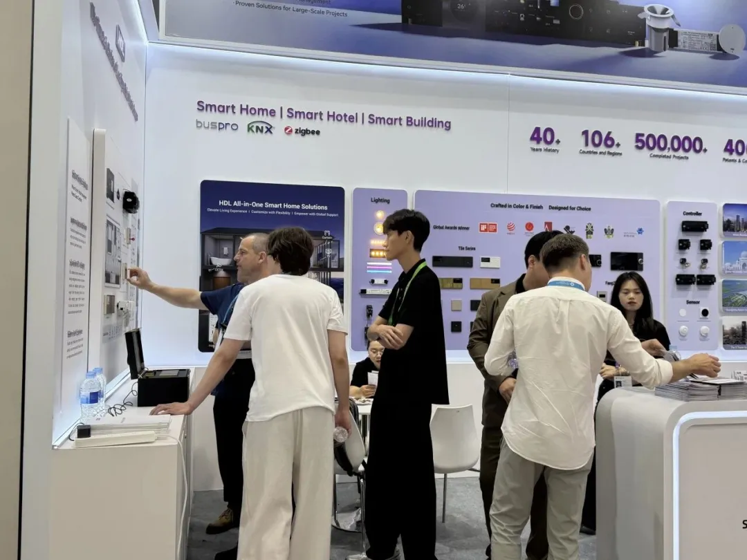 本届广交会,HDL携覆盖智慧商建、智慧酒店、全屋智能及能源管理四大领域的全场景智能解决方案实力亮相,向全球客商展示一站式智能版图,覆盖智能控制的全场景需求。