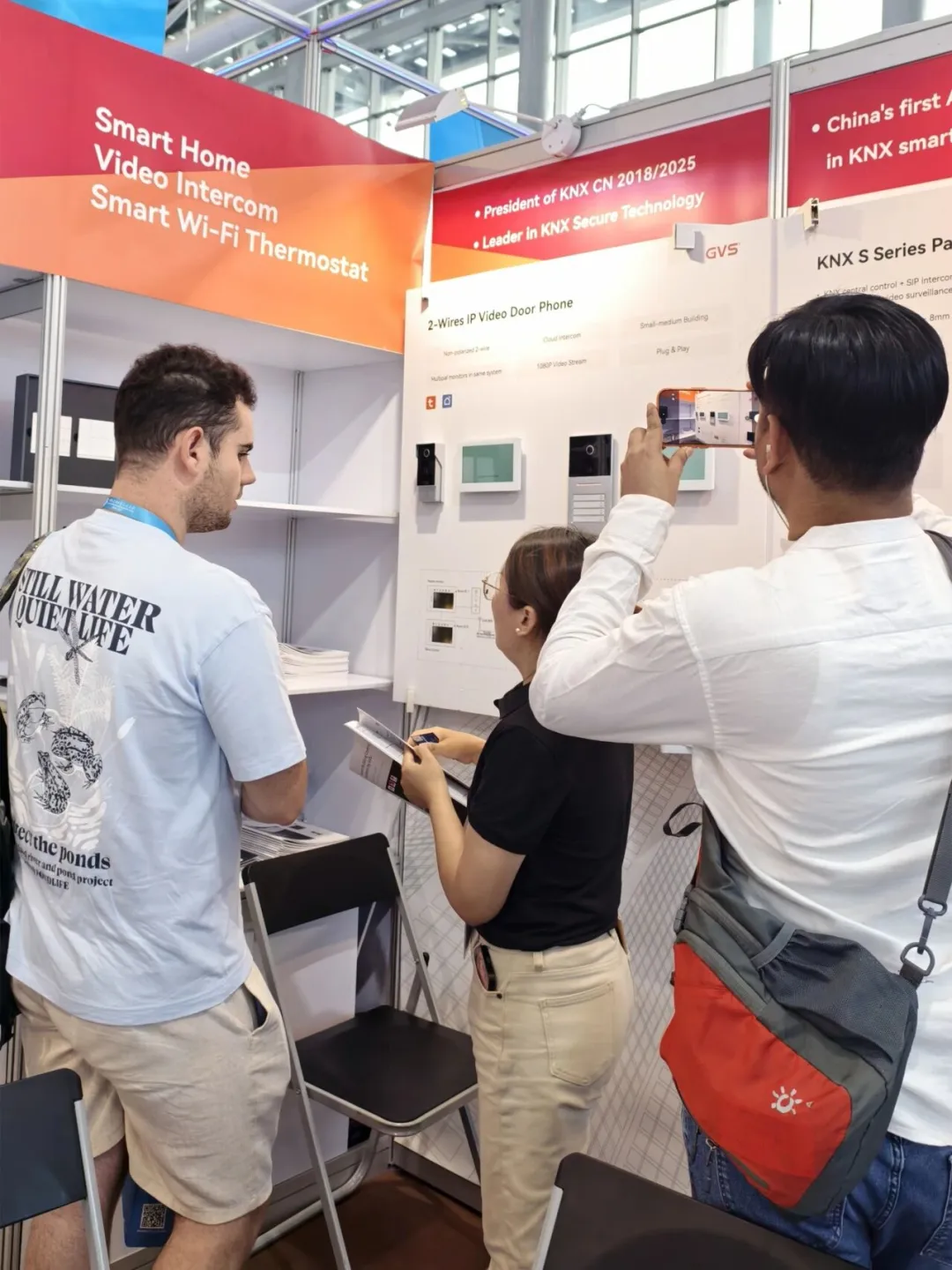 本届广交会,视声智能携旗下VINE温控器系列、KNX S系列智能屏/面板及模拟2线可视对讲系统等全栈系统产品方案亮相。凭借专业的技术产品与亮眼的展会设计,视声智能展位吸引一众海内外客商络绎驻足,热度持续攀升。