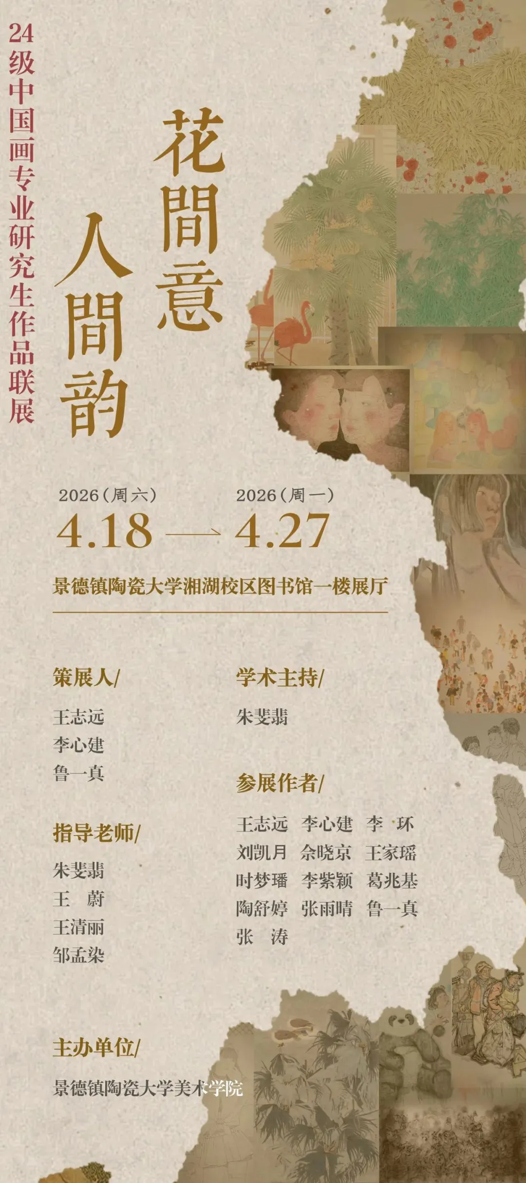 此番雅聚,不止于琳琅满目,更期待心领神会。愿观者驻足之时,能感知创作者对传统余韵的珍重、对笔下新声的执着,愿此间的笔墨性情与花间清致,轻轻叩响每一位有心人的心扉,一同见证这场人间与花间的无言相会。
