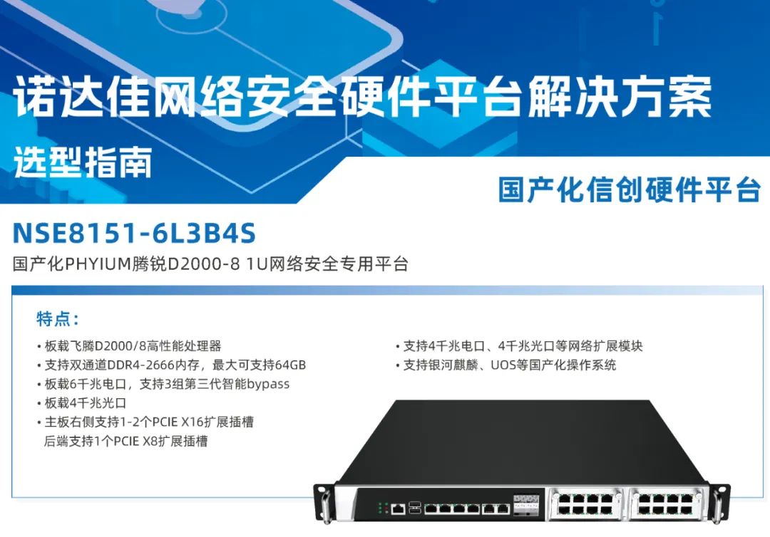 诺达佳(NODKA)2001年成立于上海,始终专注于工业计算机产品研发和创新,包括网安硬件平台、工业显示及系统、工业操作面板、嵌入式计算机及I/O等产品线,为自动化、量测、网络通讯领域的客户提供解决方案。诺达佳推出多款基于飞腾芯片的国产化网络安全硬件平台,以及支持X86架构的网络安全硬件平台。产品具有接口丰富、高性能、高可控等特点。应用于边缘计算网络安全网关、工业控制信息安全检测、物联网网络安全等行业场景中。