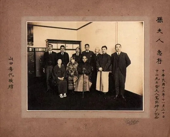 此为1924年11月30日,孙中山、宋庆龄在日本神户与日本朋友合影。