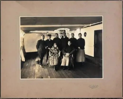 此为1924年11月30日,孙中山与宋庆龄乘船离神户赴天津时与随行人员的合影。(上海孙中山故居纪念馆藏)