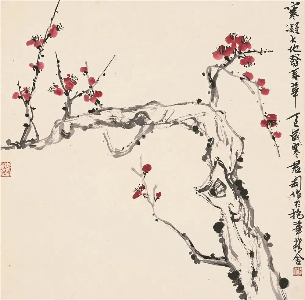 钱君匋《红梅》 纸本 69×66cm