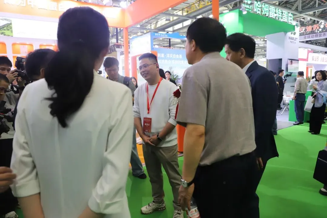 4月18日,展会第一天,中国饲料工业协会相关高层领导亲临正润生物科技展位,与总经理朱海涛及团队深入交流。领导详细了解了公司冰鲜原料供应链、双产线工艺及全链路溯源体系,对正润“以人食品标准做宠物原料”的理念给予高度评价,并鼓励企业继续发挥产业链优势,为行业高质量发展贡献力量。