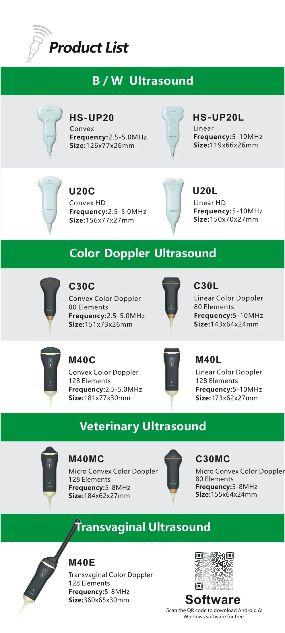 基本覆盖80%人体部位检查,解决台式超声不方便应用的场景,尤其移动医疗的快速检诊