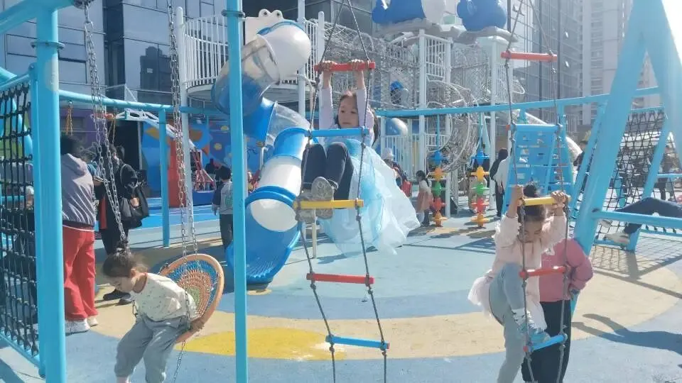 这里的设施更温和,迷你攀岩墙、旋转滑梯、坡道滑梯、多人秋千一应俱全,色彩鲜艳的游乐设备特别吸引小朋友,低龄宝宝能在里面慢慢探索,不会觉得无聊。
