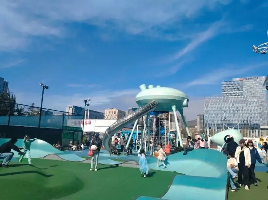 最吸睛的是8米高的大滑梯,作为金家岭金融区的“地标滑梯”,滑下来的瞬间又刺激又过瘾,娃上去就不肯下来,家长记得在下方接应,安全又安心。