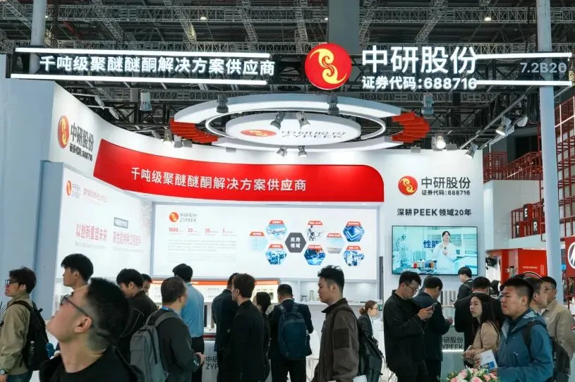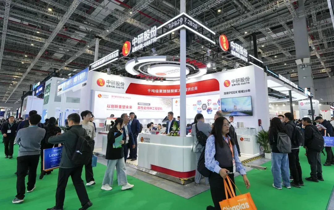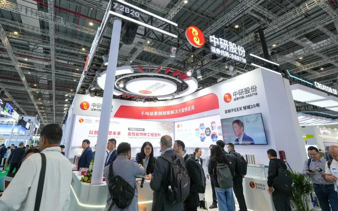 位于7.2B20展位的中研股份,无疑成为了这场橡塑革命中的焦点。作为国内聚醚醚酮A股上市企业及PEEK首套国家标准的起草单位,中研股份携旗下ZYPEEK高性能特种工程塑料体系及全流程解决方案惊艳亮相。