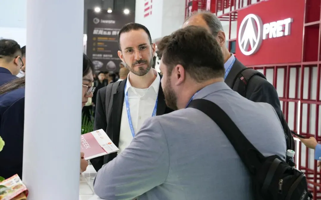 展台前人流如织,气氛热烈非常。从工业精密齿轮、轴承到医疗植入级材料,从新能源汽车轻量化部件到半导体晶圆载具,中研股份丰富的产品线直观地向全球客商展示了一颗PEEK颗粒如何“蜕变”为赋能高端智造的关键材料。
