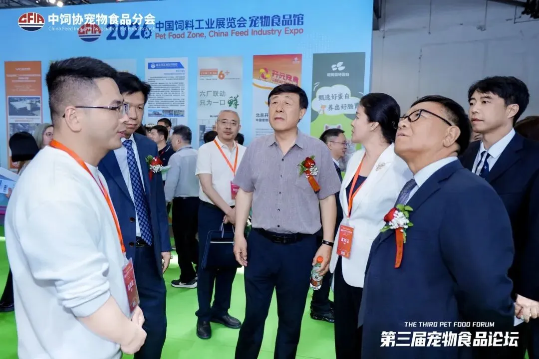 4月18日,展会第一天,中国饲料工业协会相关高层领导亲临正润生物科技展位,与总经理朱海涛及团队深入交流。领导详细了解了公司冰鲜原料供应链、双产线工艺及全链路溯源体系,对正润“以人食品标准做宠物原料”的理念给予高度评价,并鼓励企业继续发挥产业链优势,为行业高质量发展贡献力量。