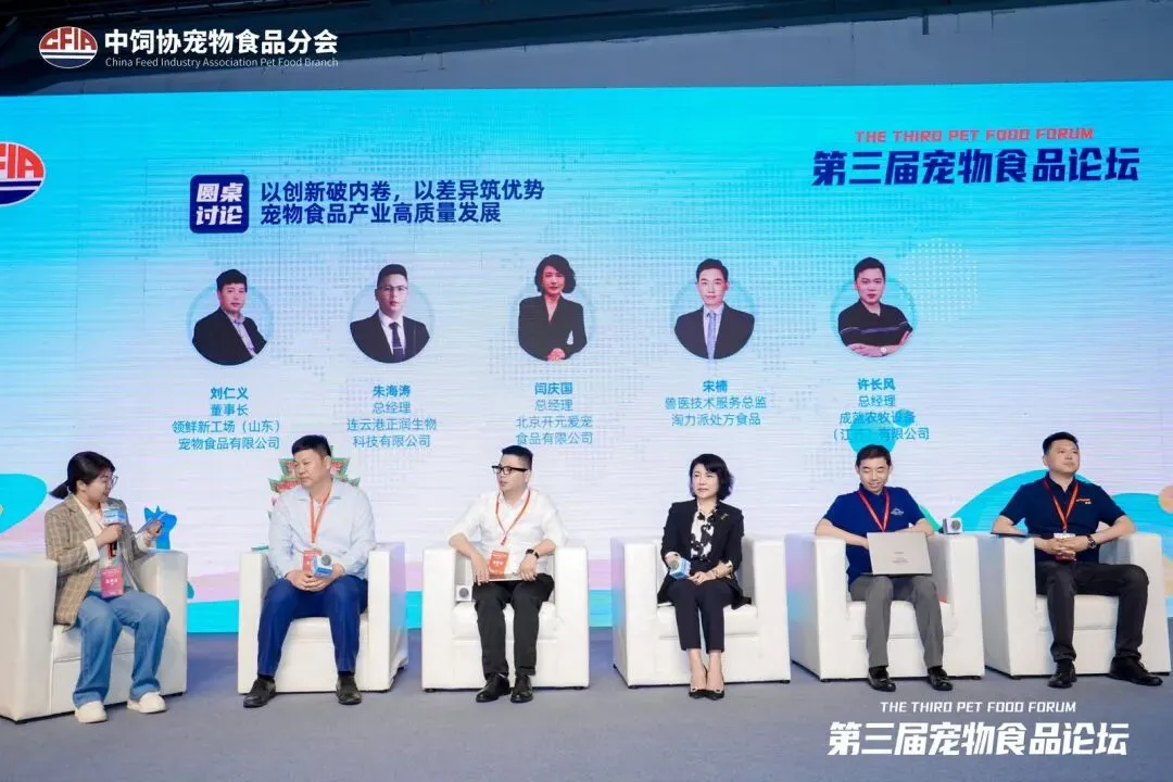 4月19日上午,“以创新破内卷、以差异铸优势”圆桌论坛在B4馆会议区举行。正润生物科技总经理朱海涛与中国饲料工业协会宠物分会副秘书长姚婷博士、领鲜新工场刘仁义董事长、北京开元爱宠闫庆国总经理、淘力派宋楠总监、成就农牧设备许长风总经理同台论道。