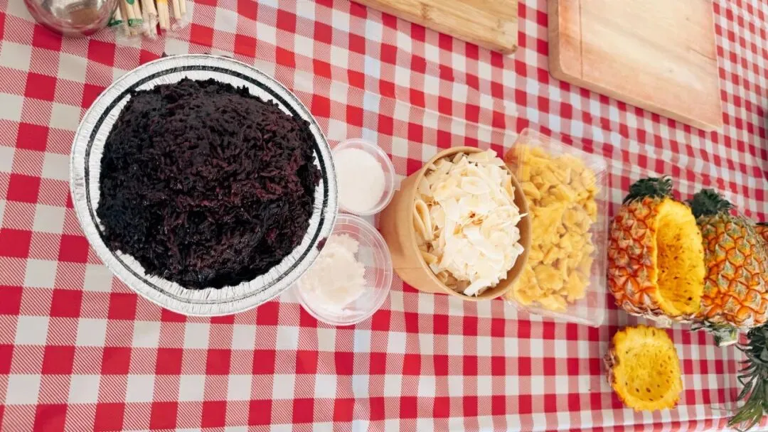 本期活动,我们走进这道源于云南、香飘四方的特色甜品——菠萝糯米饭。云南菠萝饭最早文字记载于清代《滇海虞衡志》:“滇南热带,有果名菠萝,形如凤尾,肉甜多汁,土人以糯米实其中蒸食,味香美绝。”但傣族先民实践可追溯至千年以前;《滇南杂志》《普洱府志》等地方志均记:“傣人善制菠萝饭,以紫米、白米混蒸,加椰浆、冰糖,为待客上品。”菠萝饭依靠茶马古道、南传佛教传播至滇西、滇中,成为滇菜经典;这道菜曾入选云南省级非物质文化,既是傣泰民族饮食文化同源的活见证,也是泼水节、傣历新年和婚礼等重要场合的必备菜。这道菜,不仅承载着云南人“喜清甜、爱糯食”的饮食偏好,更凝结了滇味甜品“香、甜、软、糯、润、鲜、浓”的七味精髓。我们制作的不仅是一碗糯米饭,更是一段山野田园中流传已久的甜蜜记忆;糯米包裹的不仅是果香,更是对一方水土与烟火温情的温柔触碰。