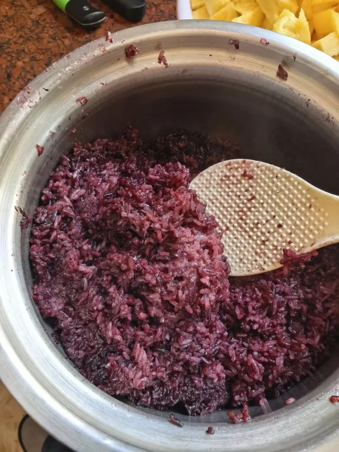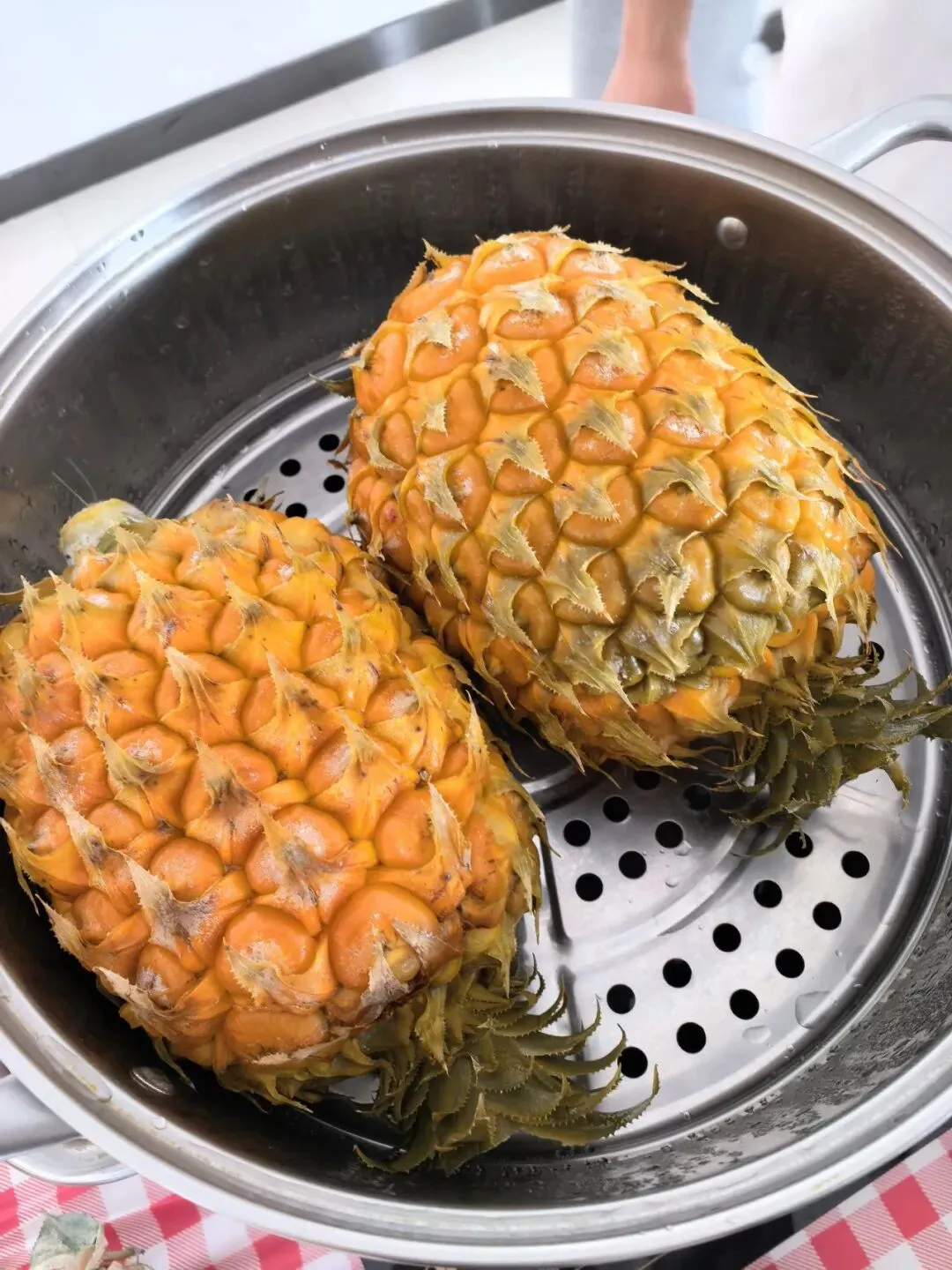 上锅蒸熟后,满屋子都是香甜的味道。我们迫不及待地尝了一口,软糯的米饭配上酸甜的菠萝,味道好极了。