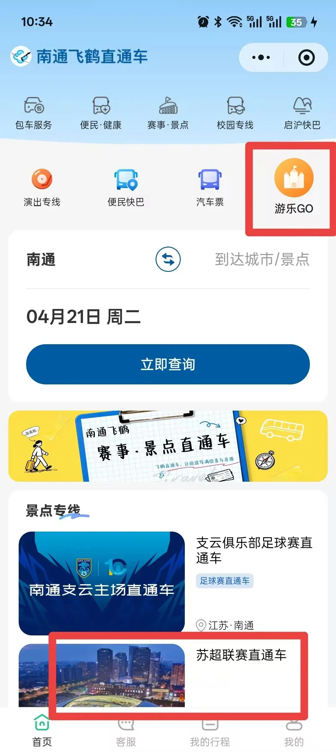 2.点击“游乐GO”,选择“苏超联赛直通车”