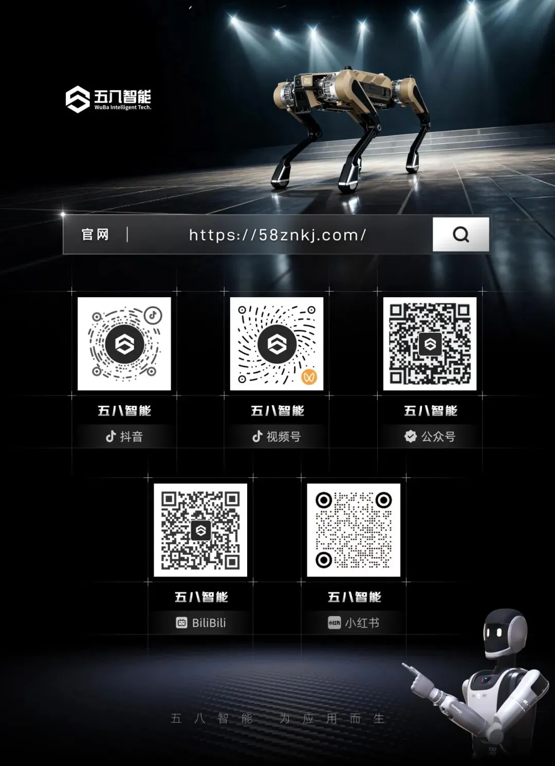 作为专注仿生机器人研发、生产与应用的高新技术企业,五八智能坚持自主创新,聚焦行业实际需求,持续打造高性能、高适配、高可靠的具身智能机器人产品。