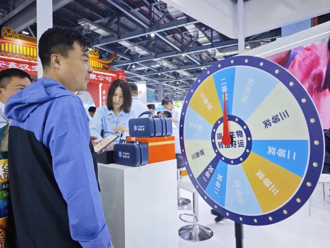 为进一步增添展位人气、拉近与客户的距离,瑞普生物在展位特别设置了幸运转盘抽奖互动环节。转盘一经启动,立刻吸引大批与会者踊跃参与,现场欢声笑语不断。获奖嘉宾纷纷与瑞普生物工作人员合影留念,热烈的互动氛围将整个展区的人气推向高潮。