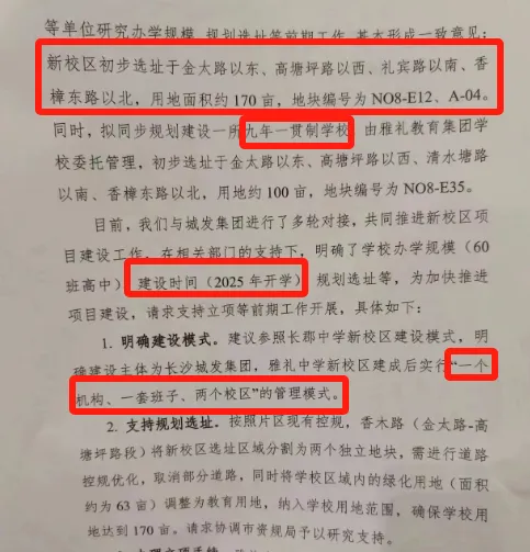@李白楼语堂 爆料过,雅礼中学“一校两址”模式,将在会展开办新校区。如图:据悉,内部文件已经上报副市长层面,等待更高层面确定后对外官宣。