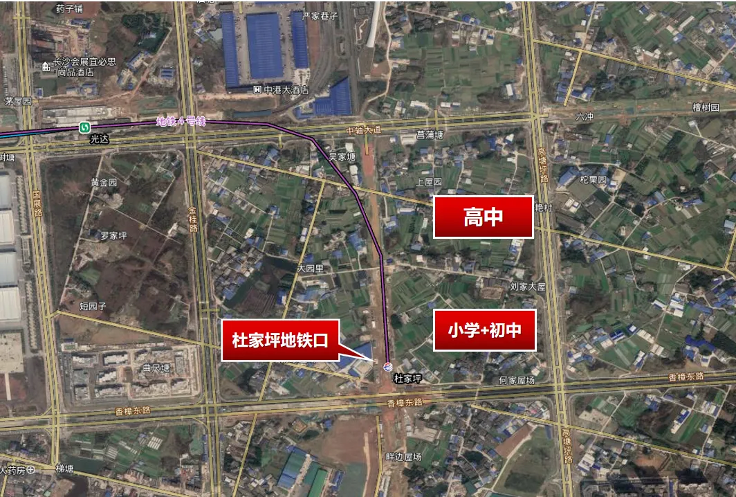 根据上图来看,明确了高中部的地址、九年制学校地址,明确了开学时间(2025年),关键是“一校两址”,与此前爆出的长郡中学、长沙市一中“一校两址”办学方法类似。好位置,其西侧已经通达地铁4号线,站点为杜家坪地铁站。会展给出了优质来举办优质学校,诚意十足。这种站点旁边,适合建设大型商业综合体和高端楼盘,现在用来建学校,估计也是考虑到其他位置短期内没有地铁,不够便利。该规划地址,原计划引入长培分校,现在看来长培得另择地址了。雅礼新校区,高中170亩,九年制学校100亩,这还会涉及到土地调整。重点标出,2025年要开学,意味着很快就会进入建设,提振会展新城楼市信心,无疑是大消息。