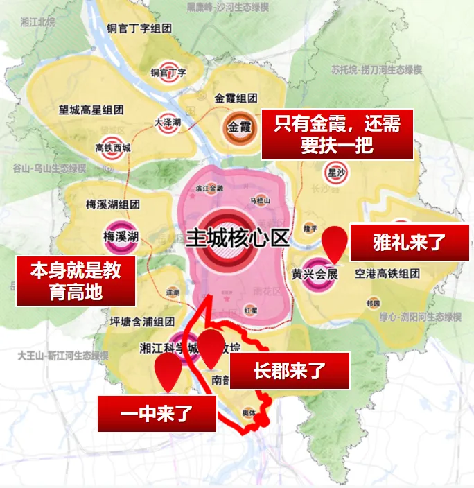 再来看长沙城市格局,“一主四副”,拥有四个副中心:南部副中心:包括湘江科学城、解放垸,这是跨江协同的副中心,前者迎来一中,后者迎来长郡。北部副中心:金霞,教育短板,片区也多年没迎来大概念、大利好,现在还剩下师大附中没有官宣“一校两址”新校区,不妨为开福金霞呼喊一嗓子,“去金霞,去金霞”。强力撬动新城区,光有高中还不行,都还需要分别投入更多资源,兄弟们,等着,会展、湘江科学城、解放垸,都还会迎来更多利好。搞清楚城市和片区发展的底层逻辑,助力买到好房。要是啥都不懂,说不定一脚就踩到坑里边,房价万年不涨。扫码加李白微信,带你看房: