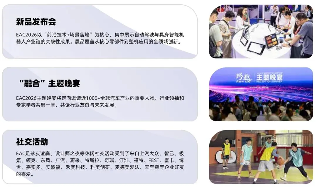 2026年5月28-29日,上海汽车会展中心,由易贸汽车主办的EAC2026自动驾驶与具身智能产业展览会重磅升级!以“大会+展览”双核模式,打造一站式价值对接超级平台,全景呈现机器人与自动驾驶智能感知的全产业链的技术盛宴,本届展览会同期将汇120+核心展商展示,120+演讲嘉宾分享,将达10000+专业观众参与,全面展示自动驾驶与具身智能机器人核心领域的创新成果。