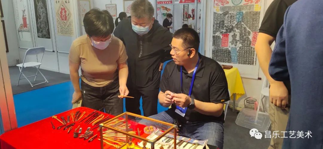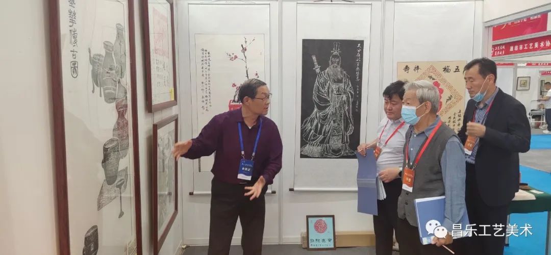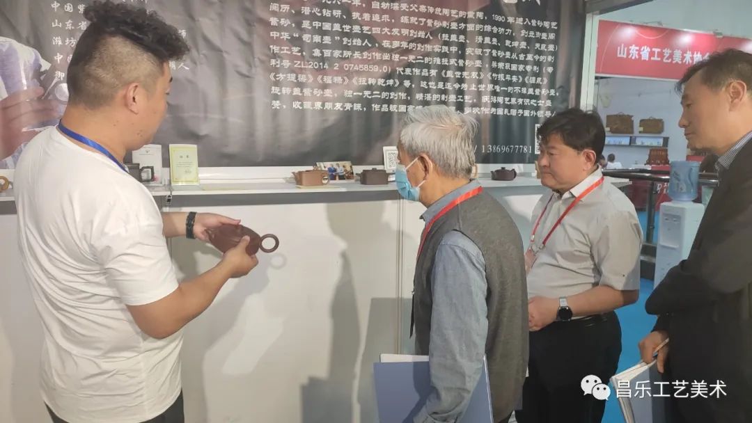 潍坊市工艺美术协会在各基层组织的精心组织下,在各工艺美术从业者的不懈努力下,博览会潍坊展区取得明显广成效,参展展位104个,参展人员200余人,参展作品600余件,昌乐分会参展展位10个,省工艺美术大师崔甲玉、肖广德,市级工艺美术大师高文、马建文、刘金柱、刘玉霞、王开杰等20余人参加此次展会。