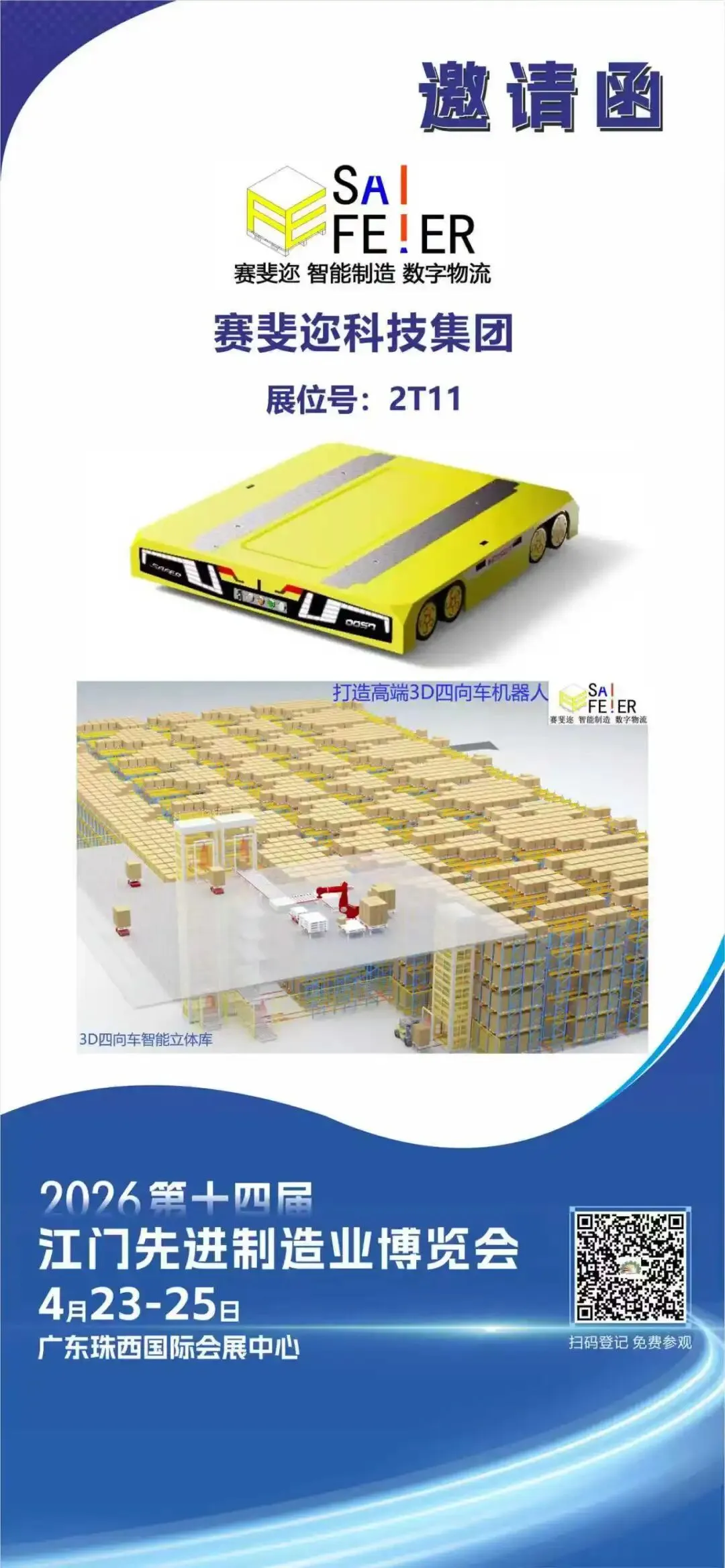 诚挚邀请您莅临2026 第十四届江门先进制造业博览会,与赛斐迩科技集团共探物流装备与技术的前沿趋势,共谋合作新机遇!