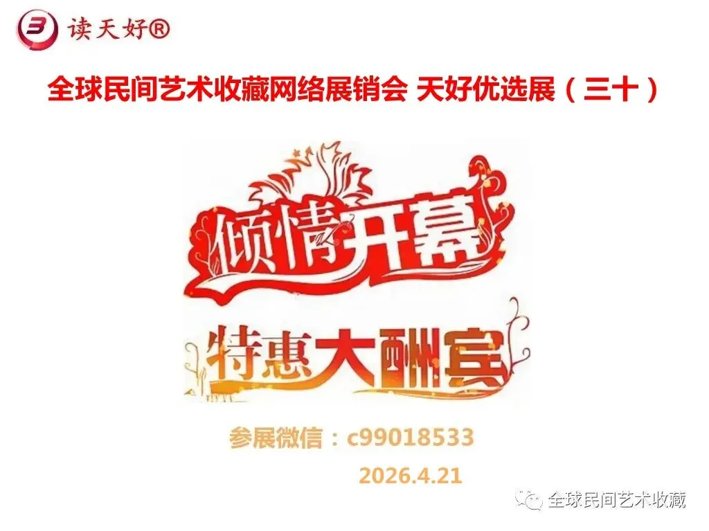 网络展销地址:《全球民间艺术收藏》《天好文化》,《天好展销馆》前二个微信公众号每期发布展讯,直接进《天好展销馆》购买。