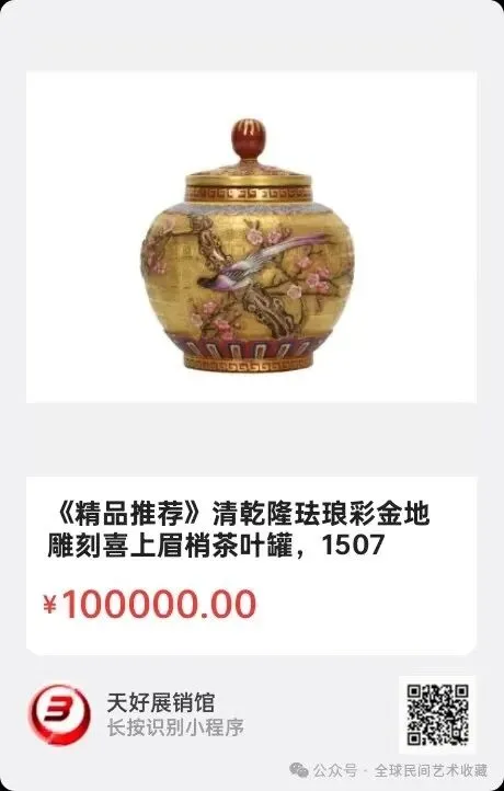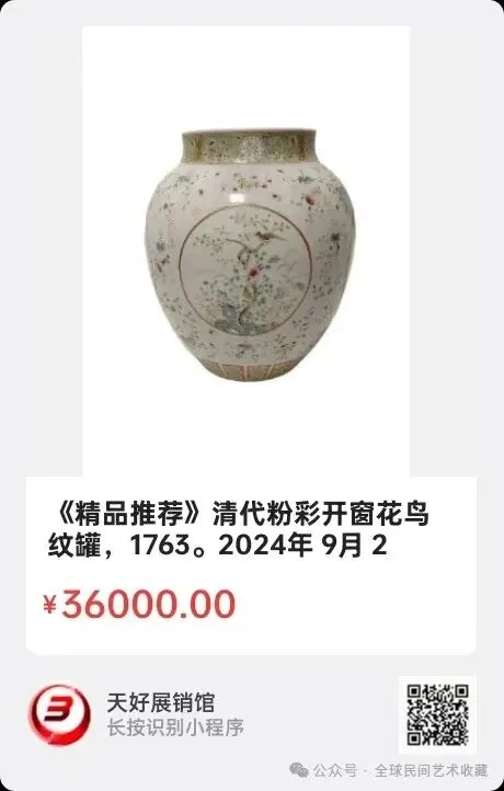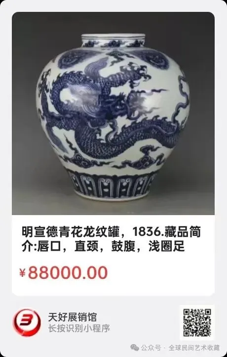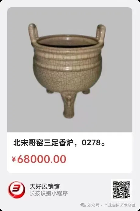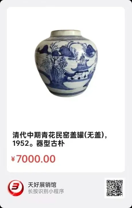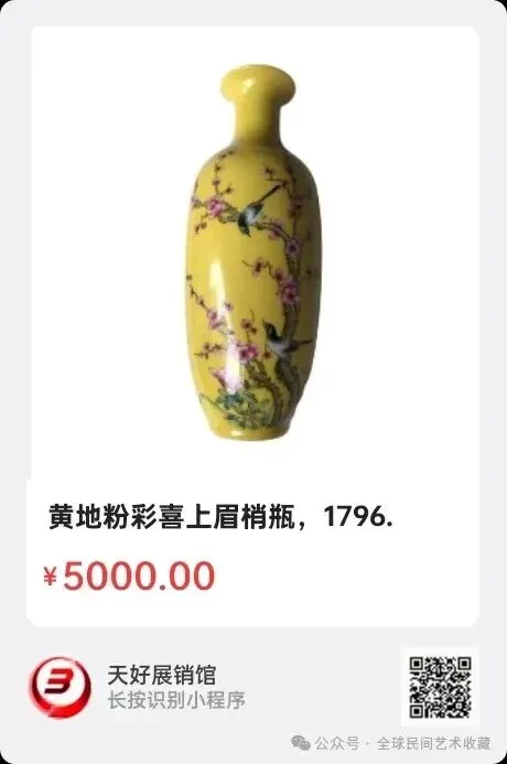 地点:《全球民间艺术收藏》《天好文化》,《天好展销馆》前二个微信公众号每期发布展讯,直接扫码进《天好展销馆》购买。