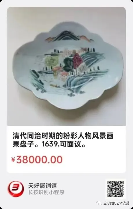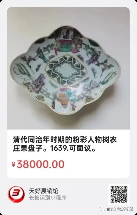 清代同治时期的粉彩人物风景画果盘子。可面议。来源1639.V.