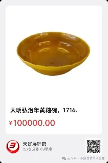 大明弘治年黄釉碗,高6公分宽12公分,来源1716.