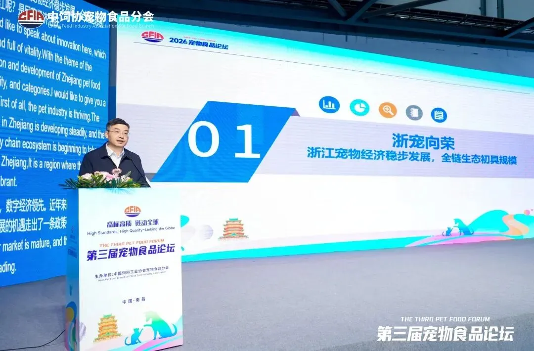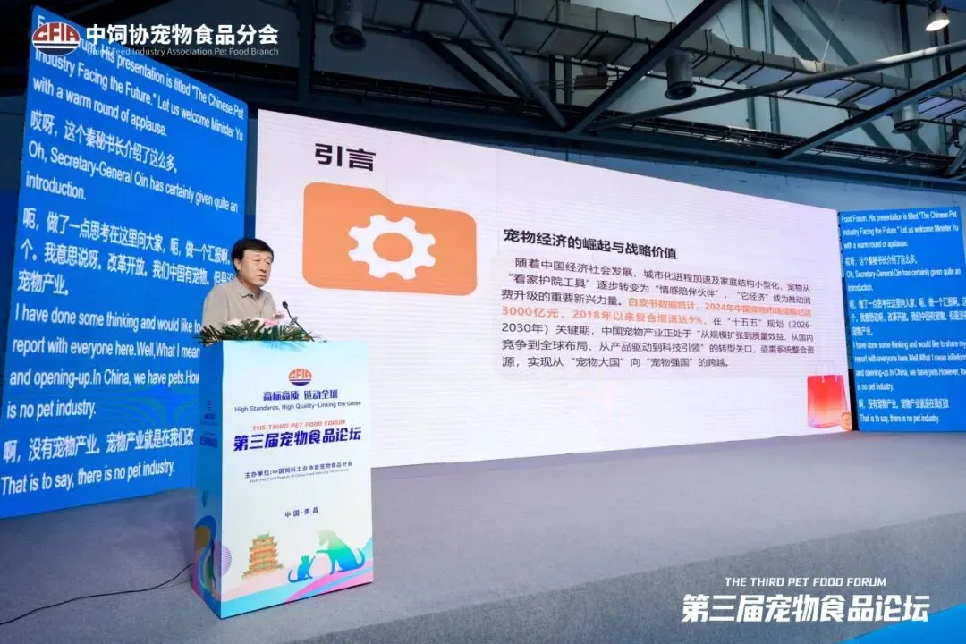 会上,中国饲料工业协会王宗礼会长致辞。他指出,宠物产业是现代畜牧业的重要延伸、是饲料工业高质量发展的新兴增长极,更是满足民生需求、促进消费升级的民生产业,近年来我国宠物相关产业快速发展,市场规模持续扩大、技术水平不断升级、产业链日趋完善,当前全球宠物产业正迎来高质量发展的黄金周期,宠物食品已成为全球农业与消费品领域的核心赛道之一。