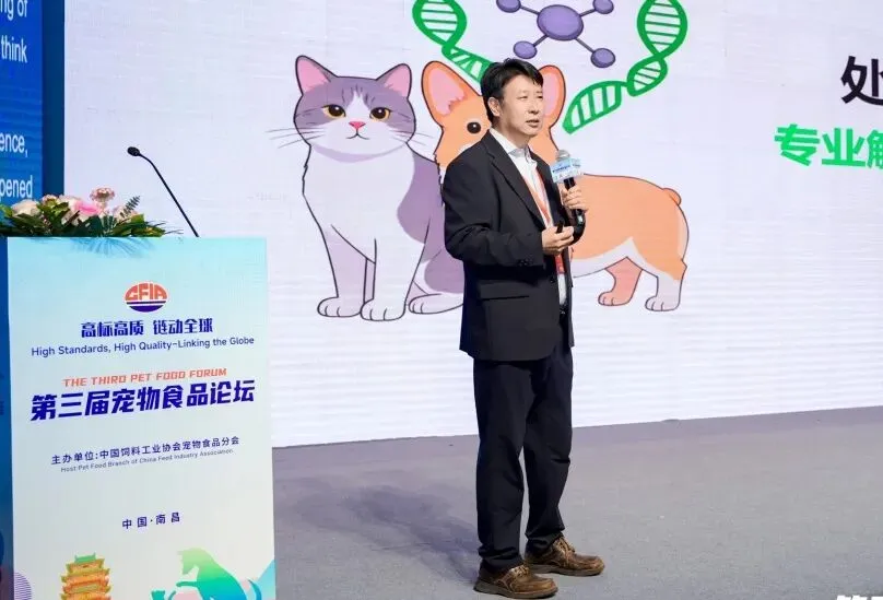作为中国饲料工业协会宠物食品分会倾力打造的核心行业平台,本届宠物食品馆同期举办了第三届宠物食品论坛。本届论坛在4月18日上午正式启幕,中国饲料工业协会副会长兼秘书长、宠物食品分会会长秦玉昌作为开场主持人为大会拉开序幕,表达对各位参会嘉宾的欢迎与感谢,并介绍本届论坛以“高标高质・链动全球”为主题,旨在搭建产业交流平台、挖掘新质生产力,推动宠物食品产业高质量发展。