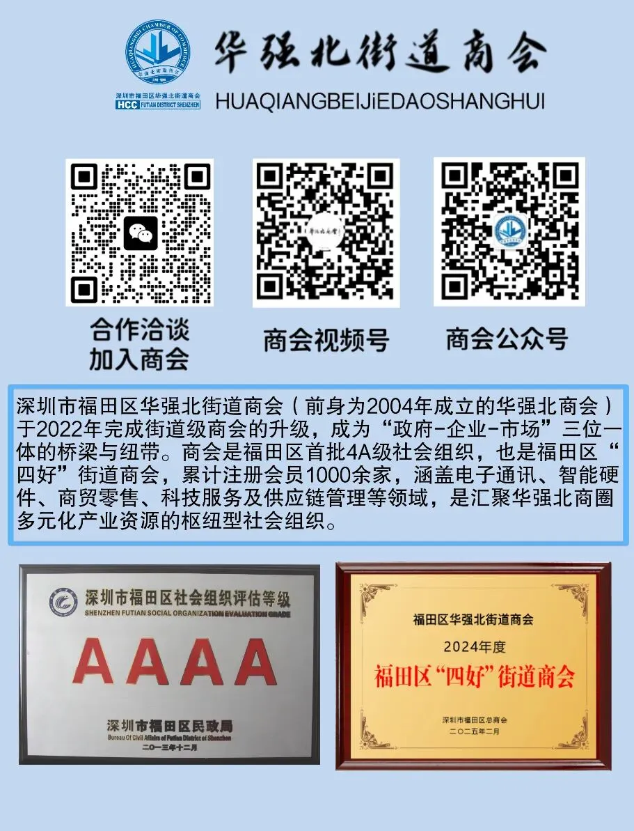此次参展,是华强北街道商会搭建产业对接平台、赋能会员企业发展的具体举措。商会充分发挥桥梁纽带作用,助力会员企业对接优质资源、洞察产业趋势、拓宽市场渠道。据悉,展会期间及后续,华强北将启动“华强北价格指数”编制、举办首届“华强北AI大讲堂”,商会也将持续联动各类资源,助力会员企业把握智能经济发展机遇,共同擦亮华强北“硬件硅谷”名片。