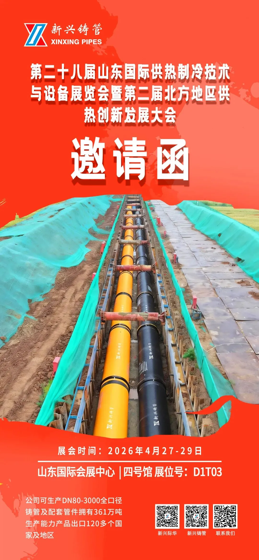 公司可生产DN80-DN3000全口径铸管及配套管件,主要应用在热力管网、城镇供排水、长距离引调水、农田灌溉及工矿等领域。可根据客户需求定制特殊内外涂层,如内衬环氧密封层、聚氨酯、环氧陶瓷、环氧粉末等;外喷涂聚氨酯、纤维水泥等。