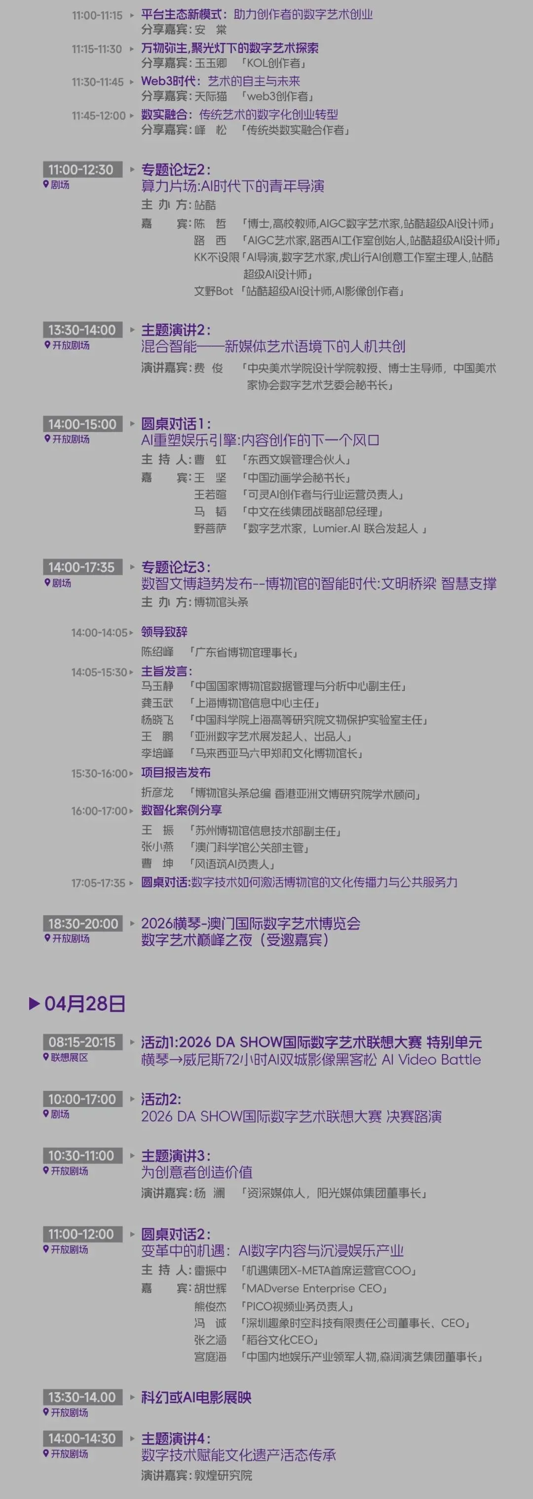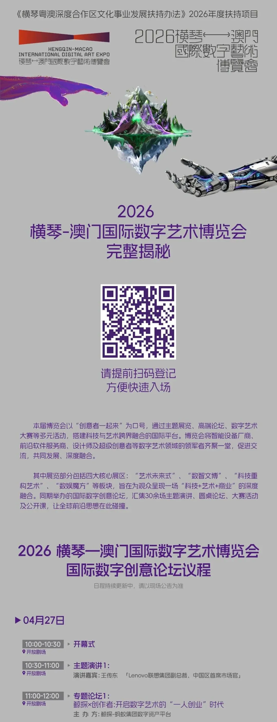 2026横琴-澳门国际数字艺术博览会嘉宾阵容及完整活动议程发布