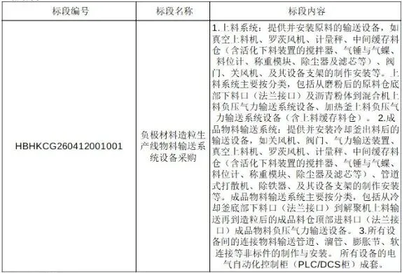 负极材料造粒生产线物料输送系统设备采购