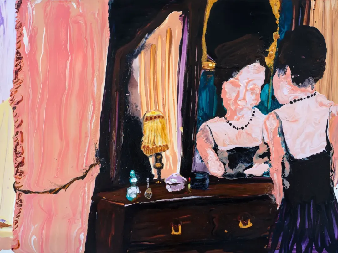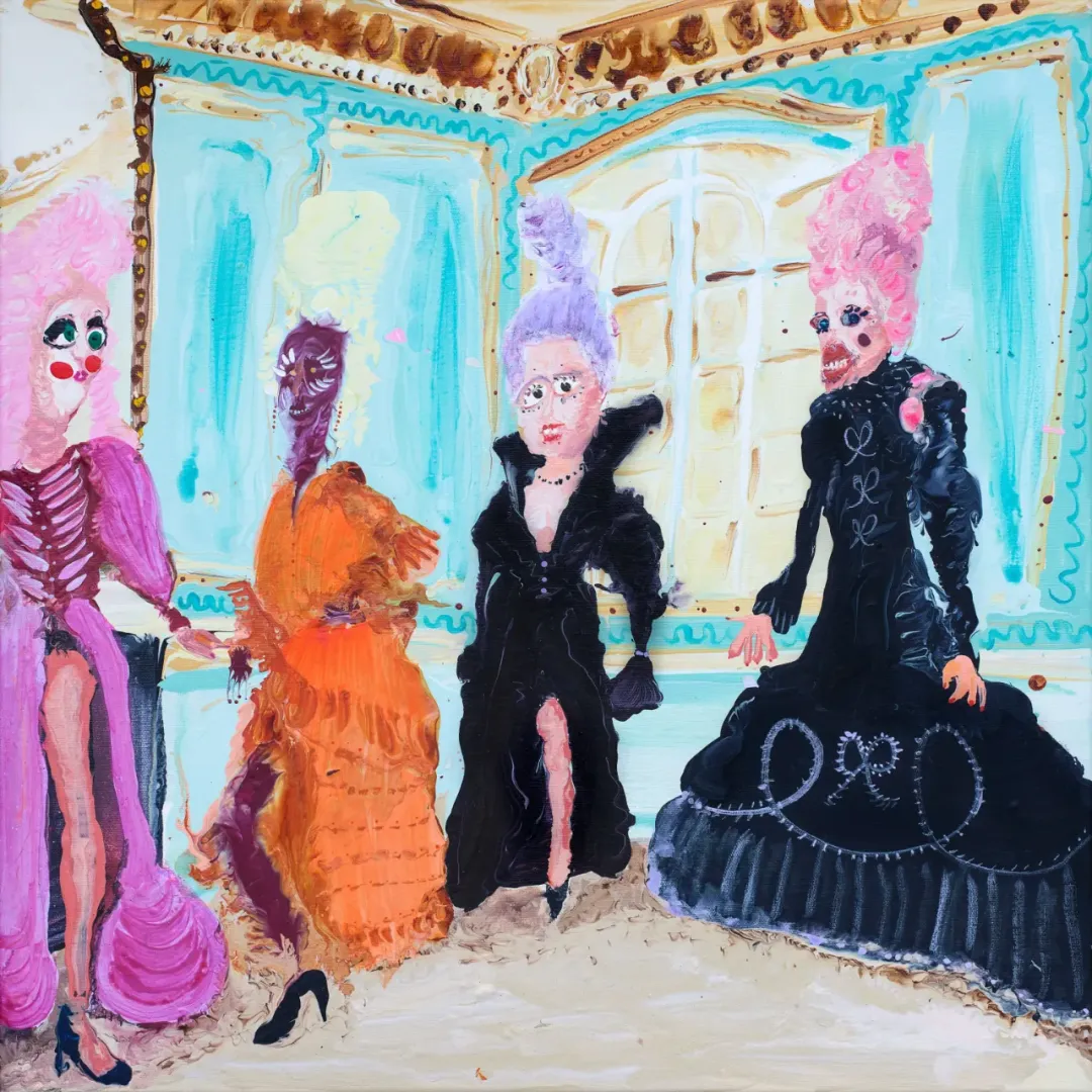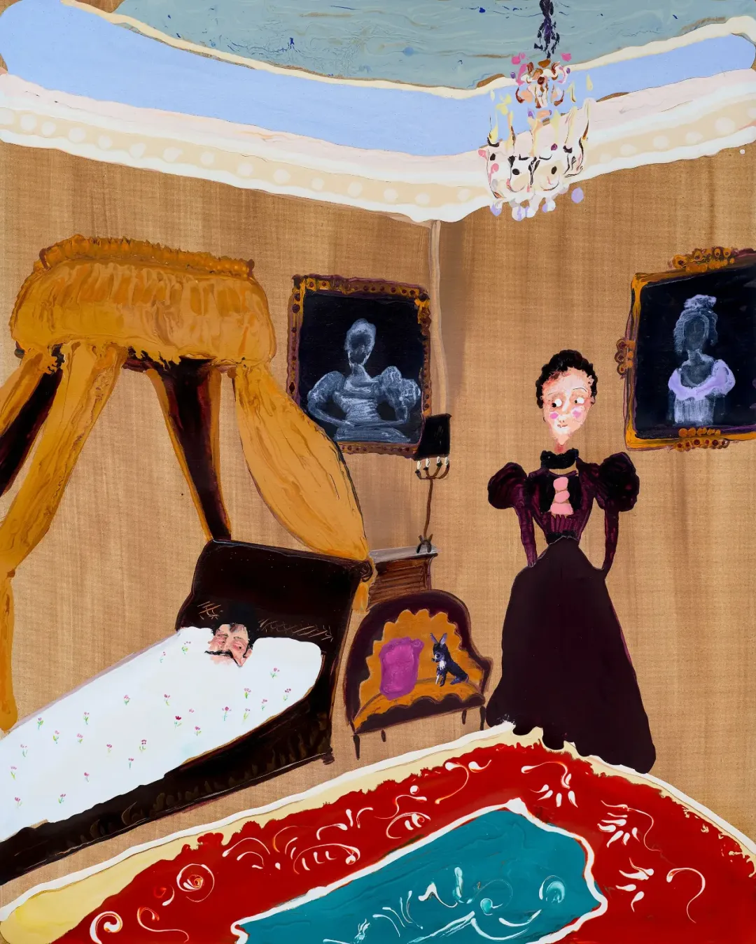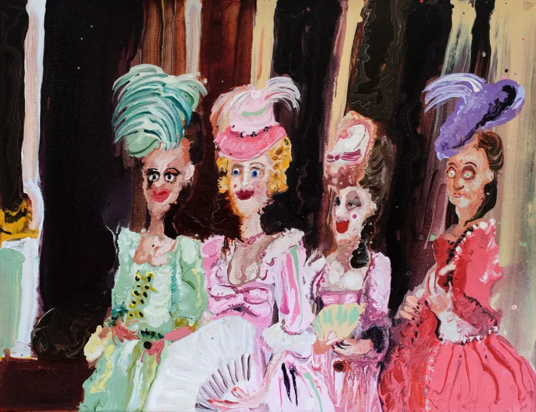艺术家长期着迷于十八世纪,这一君主专制时期在审美与主题层面都对她具有吸引力。正如她所言:“我喜欢那个时期的服饰、历史,以及当时的绘画,因为它们本身就具有戏剧性。我将绘画作为探索不同历史时期的一种方式。”