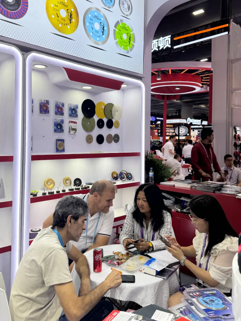 At this exhibition, we made a grand appearance with high-end resin cutting discs, diamond grinding discs, Schmidt spark-free metal saw blades, and AI lithium battery high-power brushless cutting equipment with independent intellectual property rights. By showcasing full-scenario cutting and grinding solutions on-site, we aroused great interest among new and old customers and finalized dozens of orders on the spot.