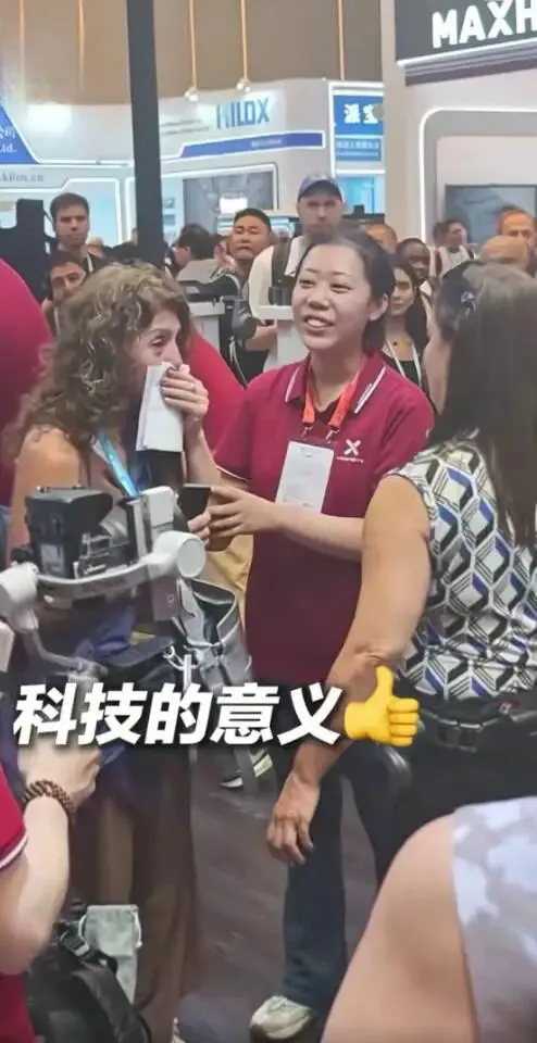视频中,这位外籍友人虽行动不便,却始终保持着专注与坚定。她在展位前耐心与客商沟通,用略显生涩却真诚的语言介绍产品,每一个动作都透着不易,却从未有过半分懈怠。或许是感受到她的执着,或许是被这份对生活、对事业的热爱打动,现场观展者不约而同地为她送上掌声,欢呼声此起彼伏。身旁的同伴看着她拼搏的模样,忍不住红了眼眶,悄悄擦拭眼角的泪水——这泪水里,有心疼,更有敬佩与骄傲。
