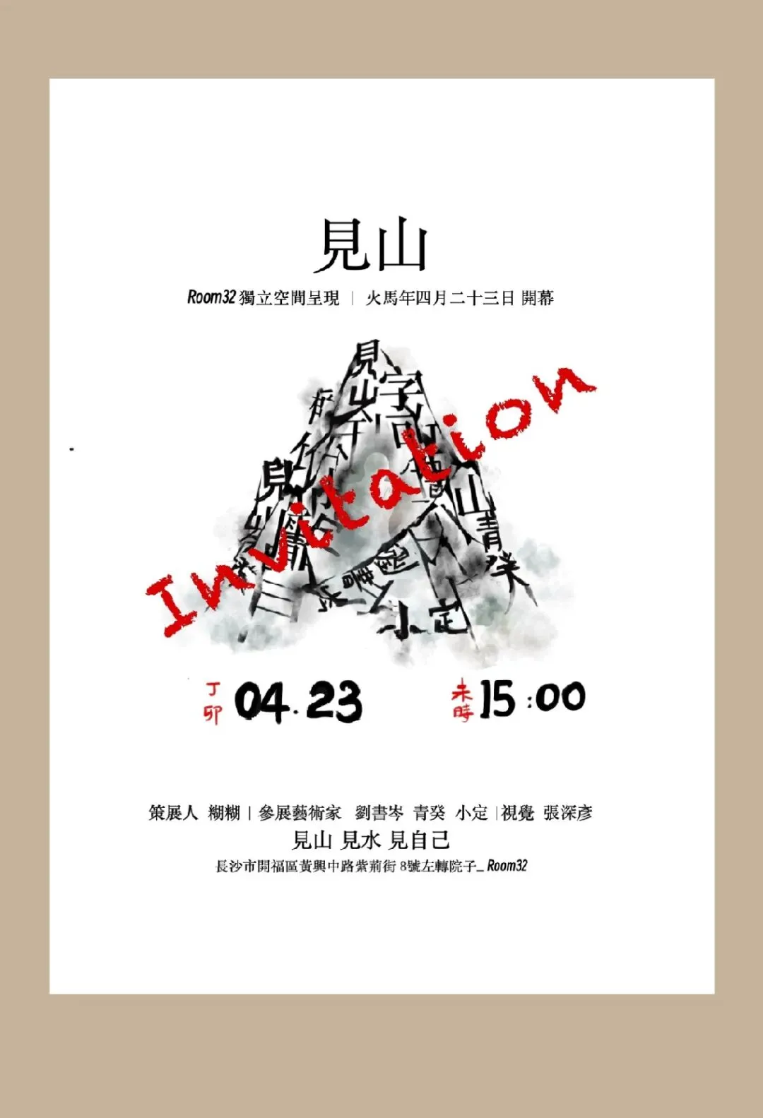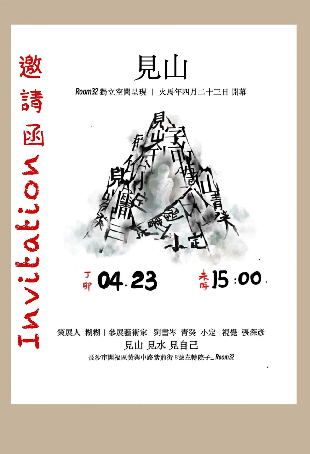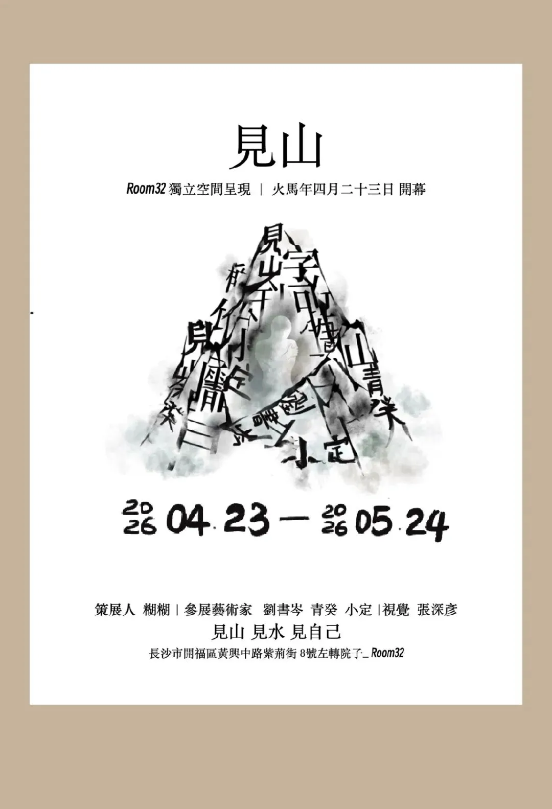見山,Gazing at the Landscape and theSelf這次展覽有點即興,緣於我在HKM看吳冠中的『邂逅風景』心被觸碰了一個人在黑暗的展廳哭到鼻子發麻。 想回長沙做個展覽『見山』見水 見自己第一個邀約藝術家我想到了小定這麼多年反反覆覆在她的文字裏看到過自己,也鼓勵過自己青癸說,每次去茶山都能獲得力量分享一下吧岑和『洄萊』展的藝術家薇薇來工作室吃著下午茶聊到文字,自己,天地直接發出邀請。。。展覽期間藝術家們會不定期駐場2026年 4月23日 周四 多雲☁️世界讀書日,邀請你們來看展,讀我們的故事也讀讀自己這本書我們的展廳就在五一廣場很好找TX長沙|年輕力中心馬路對面紫荊街巷子裏備忘院子與ROOM32主理人阿達正式合作的第3個展覽他總能發現問題和提出解決方案你有一封展覽邀請函,請查收